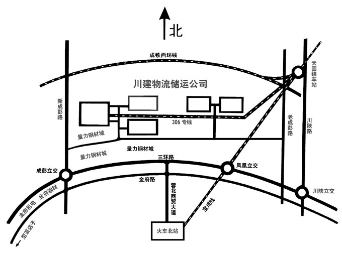 川建物流公司地理位置得天獨(dú)厚,地處成都市外北洞子口生資、建材、機(jī)電市場黃金地段,三環(huán)路成彭立交橋外200米,西緊靠新成彭公路;東臨國家鐵路寶成線、南通過成都市蓉北商貿(mào)大道僅4公里到達(dá)成都火車北站;北有成都鐵路西環(huán)線、成都繞城公路環(huán)繞其外;公司擁有5.8公里306鐵路專線與寶成鐵路在天回鎮(zhèn)接軌,自有GK1C、東方紅5型內(nèi)燃機(jī)車各一臺(tái),并有編組站線。四通八達(dá)方便快捷,是貨物儲(chǔ)存中轉(zhuǎn)的理想場地。川建物流儲(chǔ)運(yùn)公司機(jī)械化操作程度高,各類裝卸設(shè)備齊全,有8噸、16噸、50噸汽車吊各一臺(tái);有C7022、C5530、H3/36B等塔式起重機(jī)5臺(tái);10噸、20噸行車3臺(tái);3噸叉車2臺(tái)。本公司還有專業(yè)運(yùn)輸車隊(duì),各型載重汽車數(shù)十輛,并具有維修各種工程機(jī)械、汽柴油機(jī)動(dòng)車輛的能力和資格。
