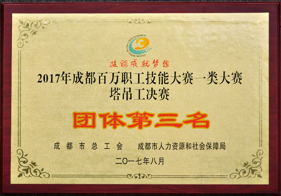 2017年8月14—15日,由成都市總工會、成都市人社局主辦、成都市總工會基建工委承辦、中建三局協辦的“技能成就夢想”2017年成都百萬職工技能大賽塔吊工比賽在中建三局中科院成都分院遷建項目成功舉行。來自成都市塔機制造廠家、建筑施工企業及設備租賃公司的17支代表隊參加了比賽。成都市總工會黨組書記張余松、成都市人社局副局長李軍等領導親臨現場觀摩、指導,并為獲獎代表隊及個人頒發了獲獎證書。